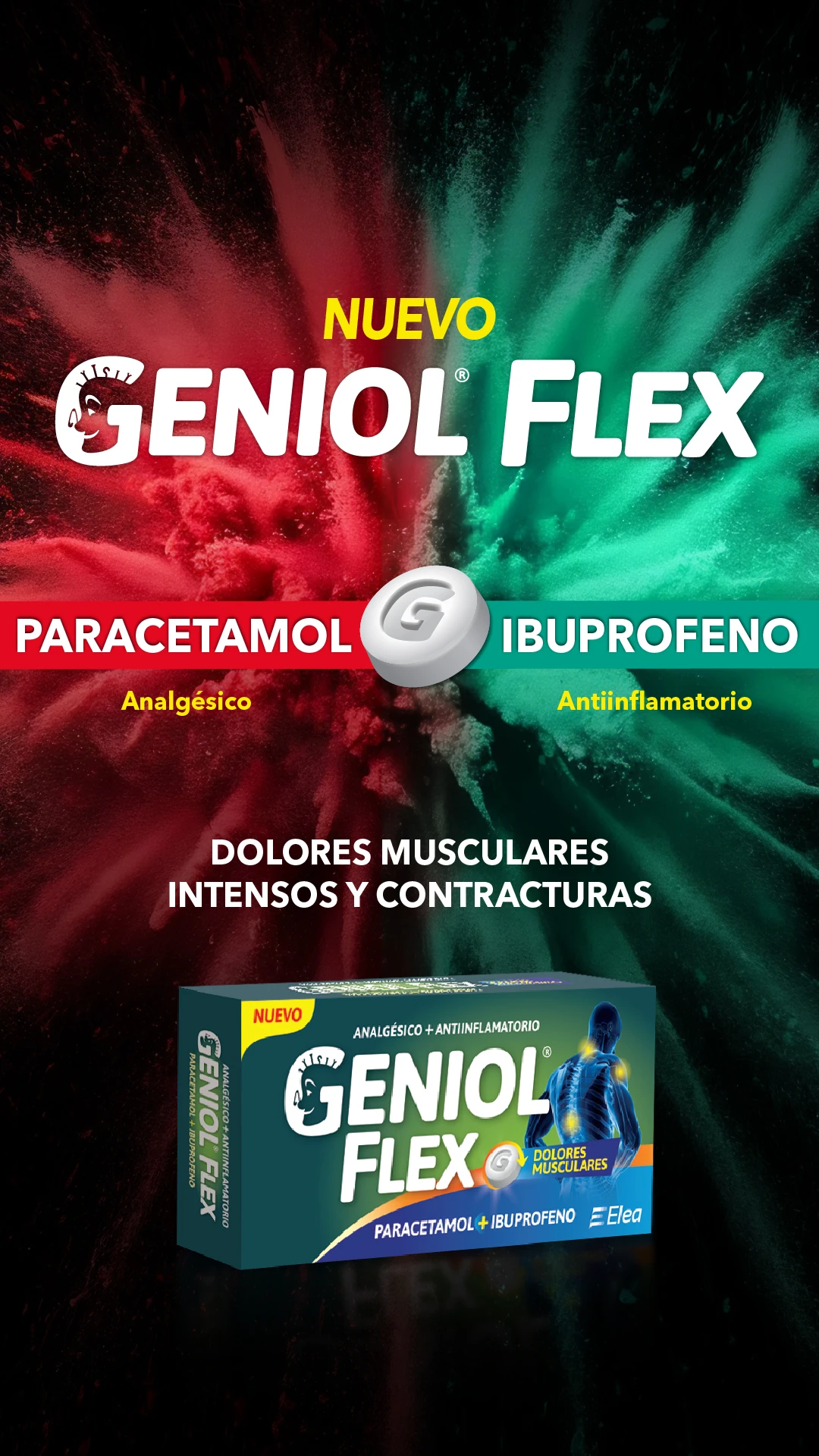Combina Paracetamol con Ibuprofeno para el alivio temporario de dolores de espalda, musculares, articulares y menstruales.